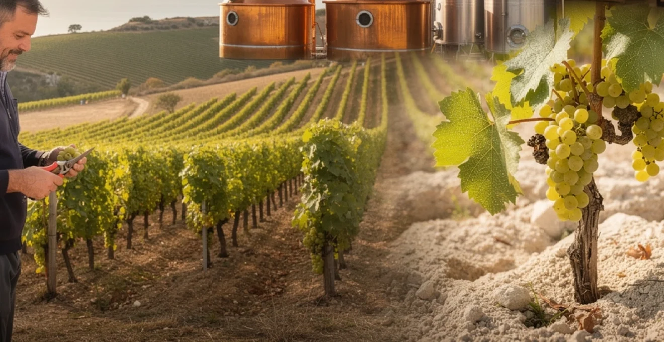 Dans l’univers prestigieux des eaux-de-vie françaises, l’Ugni blanc règne en maître absolu, bien qu’il demeure méconnu du grand public. Ce cépage d’origine italienne, également appelé Trebbiano toscano, constitue l’épine dorsale de la production de Cognac, représentant plus de 98% de l’encépagement charentais. Sa discrétion aromatique et ses caractéristiques uniques en font le candidat idéal pour la distillation, transformant des vins apparemment simples en eaux-de-vie d’exception. Cette transformation remarquable illustre parfaitement comment certaines variétés trouvent leur véritable vocation non pas dans l’expression directe du fruit, mais dans leur capacité à révéler leurs qualités cachées à travers des processus de transformation complexes.